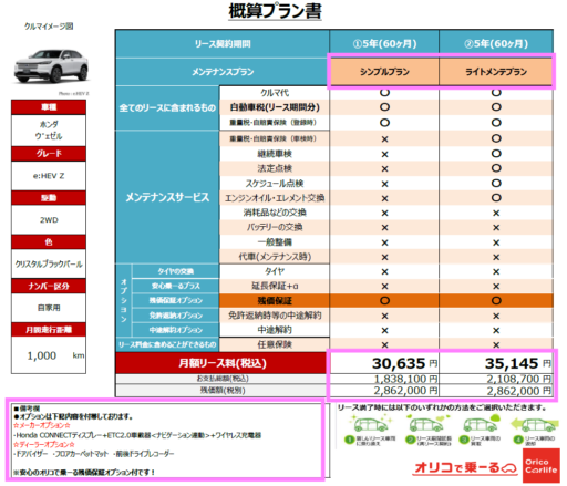ヴェゼル e:HEV Z 2WD  月1,000km で試算